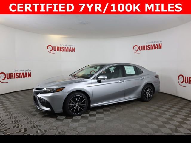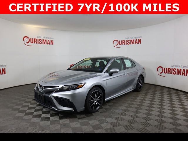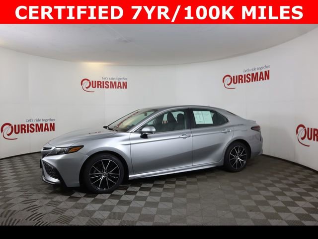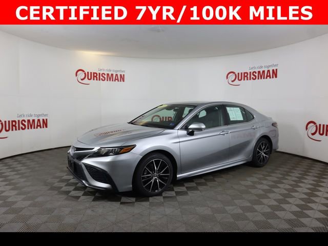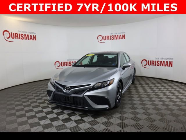 Certified. Celestial Silver Metallic 2023 Toyota Camry SE FWD 8-Speed Automatic 2.5L I4 DOHC 16V Clean CARFAX. CERTIFIED 7 YEAR/ 100,000 MILE WARRANTY, ABS brakes, Active Cruise Control, Alloy wheels, Electronic Stability Control, Front dual zone A/C, Heated door mirrors, Illuminated entry, Low tire pressure warning, Remote keyless entry, Traction control.