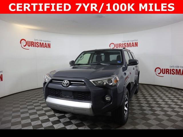 Certified. Gray 2024 Toyota 4Runner TRD Off-Road 4WD 5-Speed with ECT 4.0L V6 DOHC 24V CARFAX One-Owner. Clean CARFAX. CERTIFIED 7 YEAR/ 100,000 MILE WARRANTY.