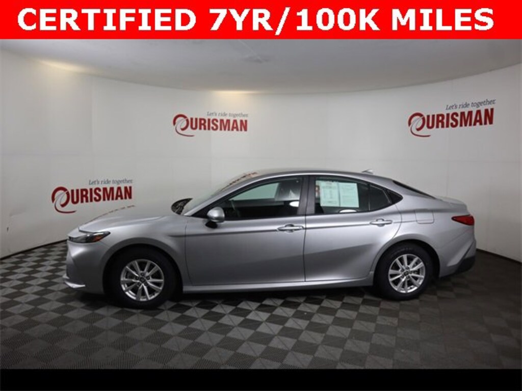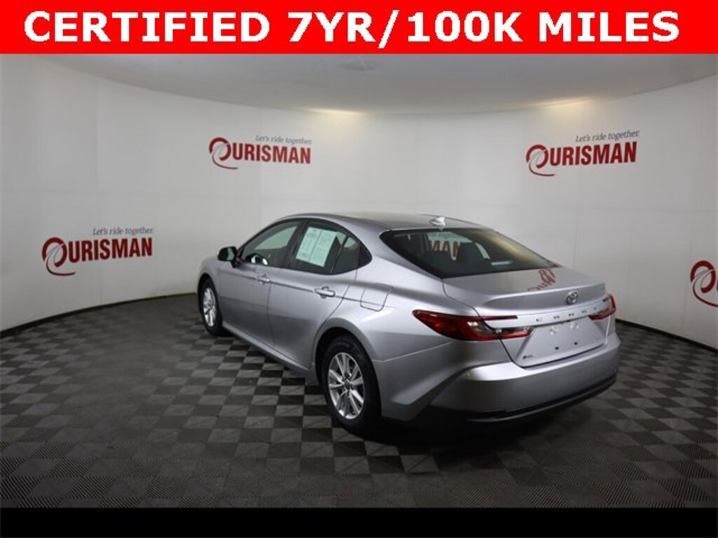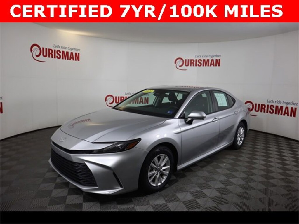 Certified. Silver 2025 Toyota Camry LE FWD eCVT 2.5L 4-Cylinder 16V DOHC CARFAX One-Owner. CERTIFIED 7 YEAR/ 100,000 MILE WARRANTY.