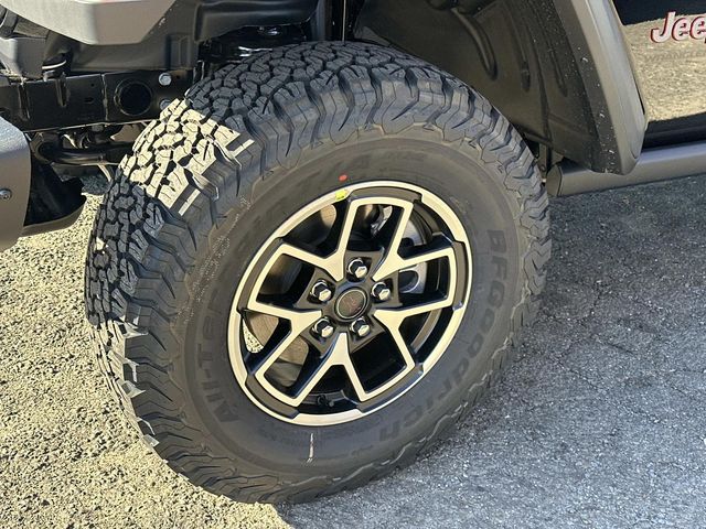 12.3" Touchscreen Display, 4-Wheel Disc Brakes, 4.10 Rear Axle Ratio, 4G LTE Wi-Fi Hot Spot, 8 Speakers, ABS brakes, Air Conditioning, Alloy wheels, AM/FM radio: SiriusXM with 360L, Apple CarPlay, Apple CarPlay/Android Auto, Automatic temperature control, Aux Battery, Auxiliary Switches, Black 3-Piece Hard Top, Brake assist, Class II Receiver Hitch, Cloth Low-Back Bucket Seats, Compass, Connectivity - US/Canada, Convenience Group, Cruise control, Delay-off headlights, Driver door bin, Driver vanity mirror, Dual front impact airbags, Dual front side impact airbags, Electronic Stability Control, Emergency communication system: Jeep Connect, For More Info, Call 800-643-2112, Freedom Panel Storage Bag, Front anti-roll bar, Front Bucket Seats, Front Center Armrest w/Storage, Front dual zone A/C, Front fog lights, Front License Plate Bracket, Front reading lights, Fully automatic headlights, Google Android Auto, Heated door mirrors, Heated Front Seats, Heated Steering Wheel, Illuminated entry, Integrated Center Stack Radio, Integrated roll-over protection, Low tire pressure warning, MOPAR All-Weather Floor Mats, Myflexcare Service Plan, No Soft Top, Non-Lock Fuel Cap Without Discriminator, Occupant sensing airbag, Outside temperature display, Overhead airbag, Panic alarm, ParkView Rear Back-Up Camera, Passenger door bin, Passenger vanity mirror, Performance Suspension, Power door mirrors, Power steering, Power windows, Quick Order Package 24R Rubicon, Radio data system, Radio: Uconnect 5 with 12.3" Display, Rear anti-roll bar, Rear reading lights, Rear Window Defroster, Rear Window Wiper/Washer, Remote keyless entry, Security system, SiriusXM Radio Service, SiriusXM with 360L, Split folding rear seat, Steel Bumper Group, Steel Front Bumper, Steel Rear Bumper, Steering wheel mounted audio controls, Stop-Start Dual Battery System, Tachometer, Telescoping steering wheel, Tilt steering wheel, Traction control, Trip computer, Universal Garage Door Opener, Variably intermittent wipers, Voltmeter, Wheels: 17" x 7.5" Machined/Painted Black.